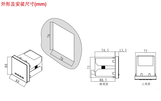 例 1 、如客戶需要單相交流電壓表,產(chǎn)品名稱為電壓表,輸入方式為交流,外形尺寸為 80 × 80,