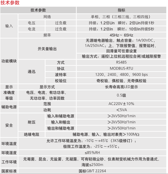 96 × 96, 品種結(jié)構(gòu)為 RS485 通訊,顯示方式為一排數(shù)碼管顯示,量程為 AC450V 100/5A 則相對(duì)應(yīng)