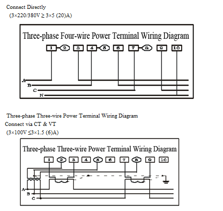 2) The function of connection via VT/CT is only available for 1.5(6)A & 3(6)A meters with the rated secondary current of the transformer is 5A.